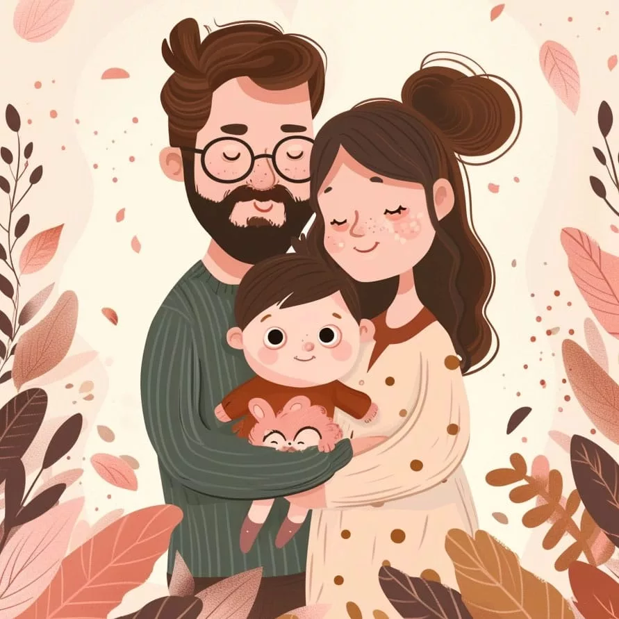 In the past, it was often thought that fathers had a very specific role in the family. But today, we know that fathers can do many things. They can take care of their children, cook, play with them, teach them new things, and most importantly, show them lots of love. The dads in our drawing, like all parents, have a crucial role in providing love, protection, education, and fun in their baby’s life.