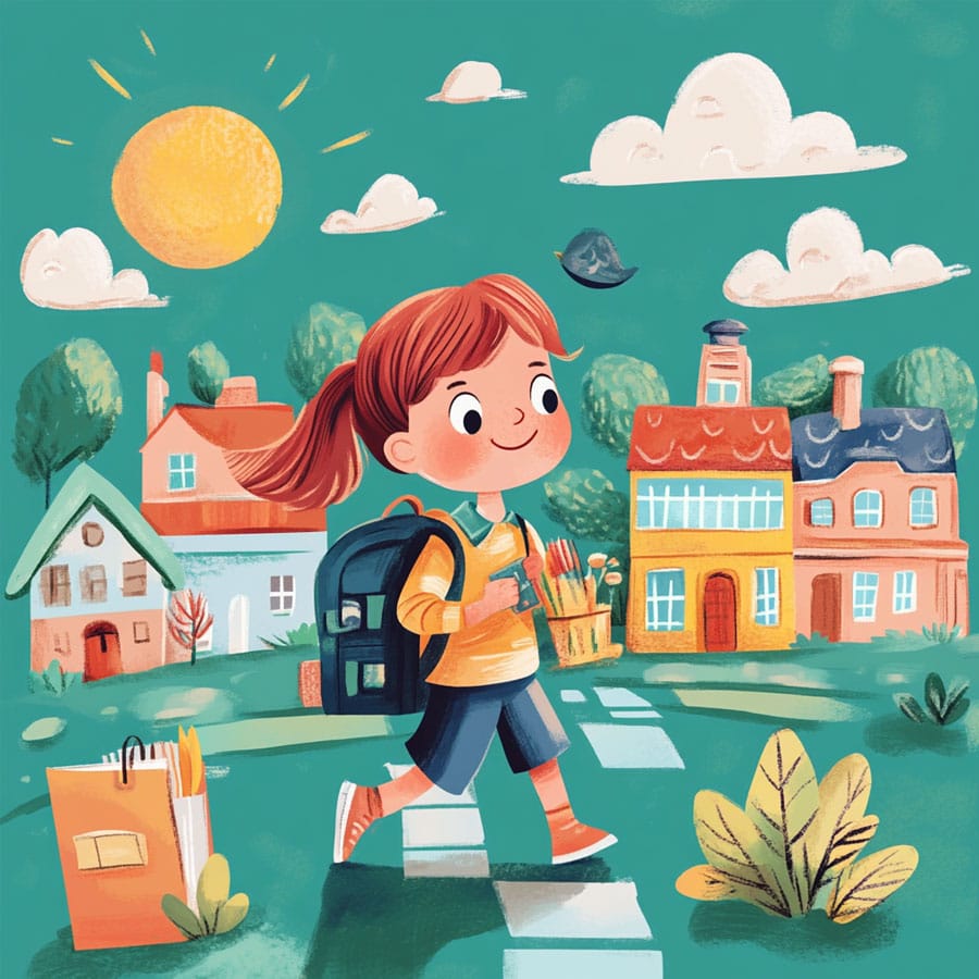 You can let your creativity run wild as you decide what colors to use for the girl’s backpack. Will it be bright and colorful, have cool patterns, or maybe even your favorite characters? Don’t forget to add life to her clothes and all the school supplies she’s carrying. With your imagination, this **school** scene will come to life uniquely and colourfully!