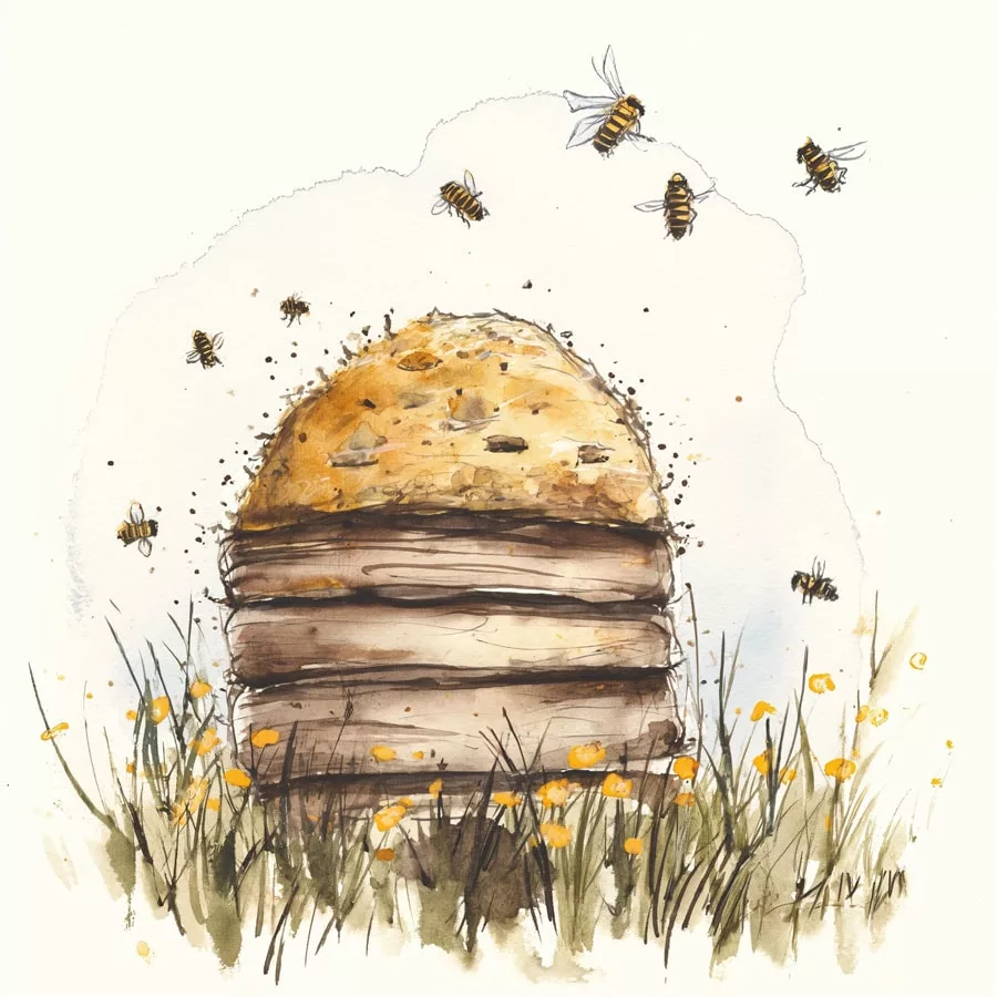 The beehive should feel cozy and safe. You can use earthy colors like ochre, soft oranges, and light browns. Try coloring in little circles to give it a waxy texture. Don’t forget to add a bit of shadow at the entrance so it looks deeper and more inviting.