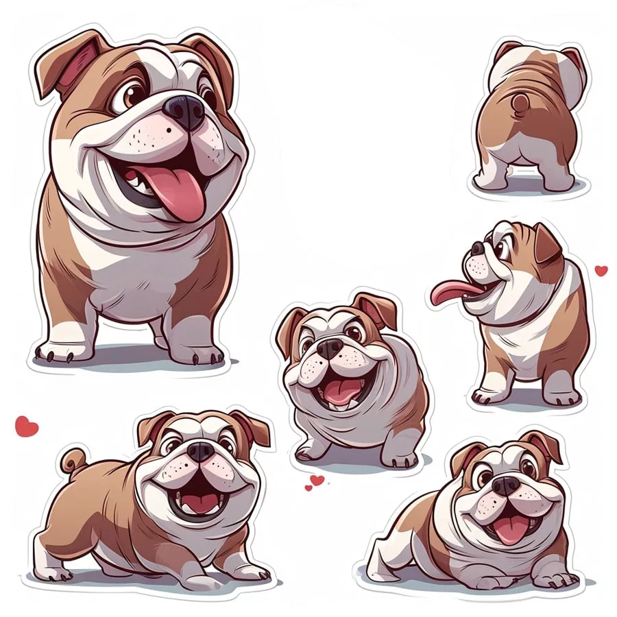 Bulldogs are a breed of dog known for their distinctive appearance and unique personality. Originating from England, these dogs are famous for their large, broad heads, facial wrinkles, and short, flat snouts. They are medium-sized dogs with a muscular, compact body that gives them a robust appearance.