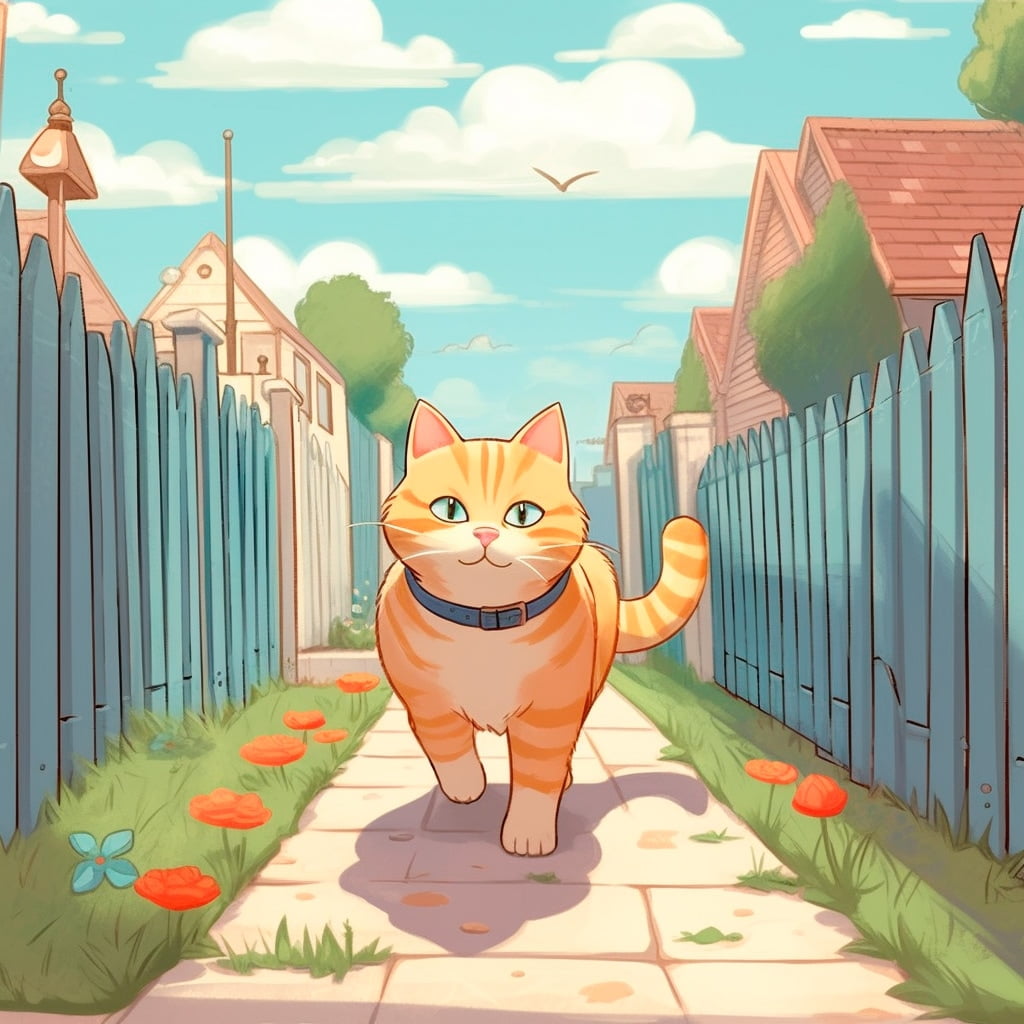 For the path, earthy tones work well. Try light brown with hints of gray, or even lavender if you’re aiming for a storybook feel. Add shadow right under the cat’s paws so it looks like it’s really walking.