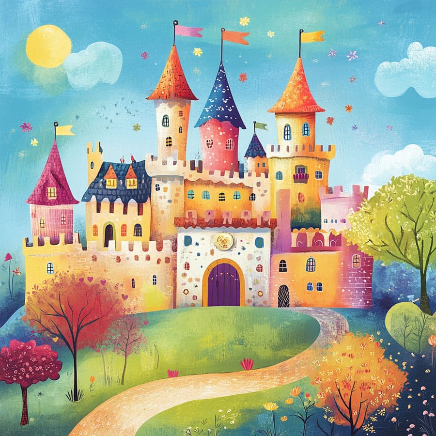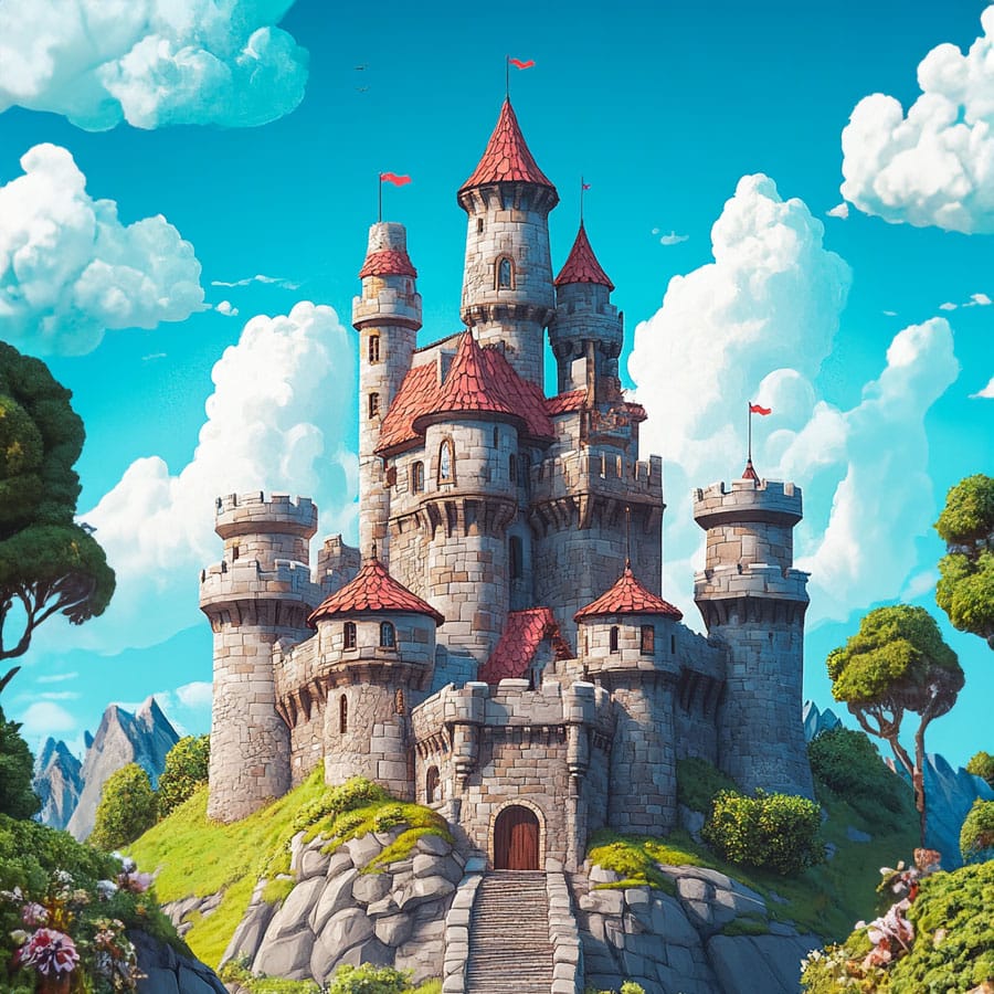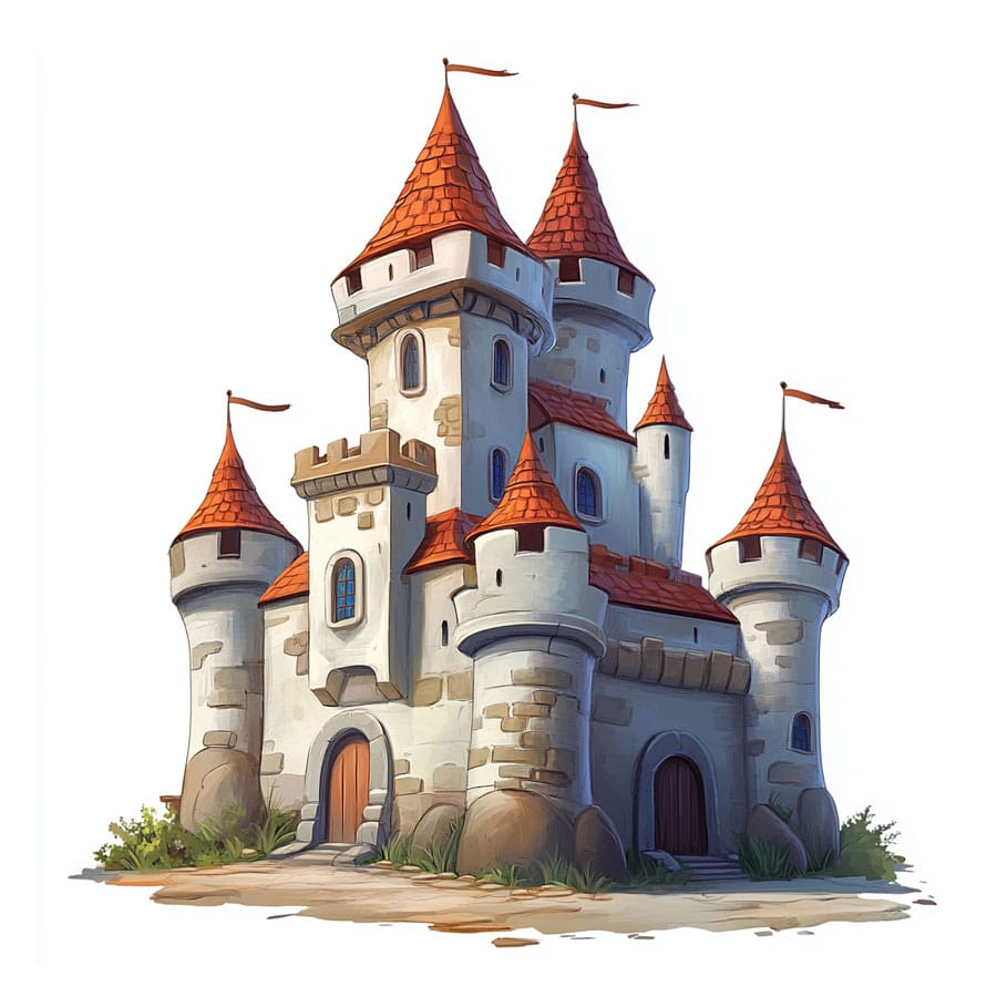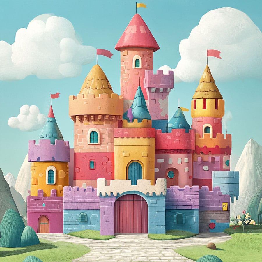 Castle walls: You can use light grays or browns for the castle walls, giving it a stone or brick look. If you prefer something more magical, you can use colors like pink, blue, or purple to create a fairytale castle!