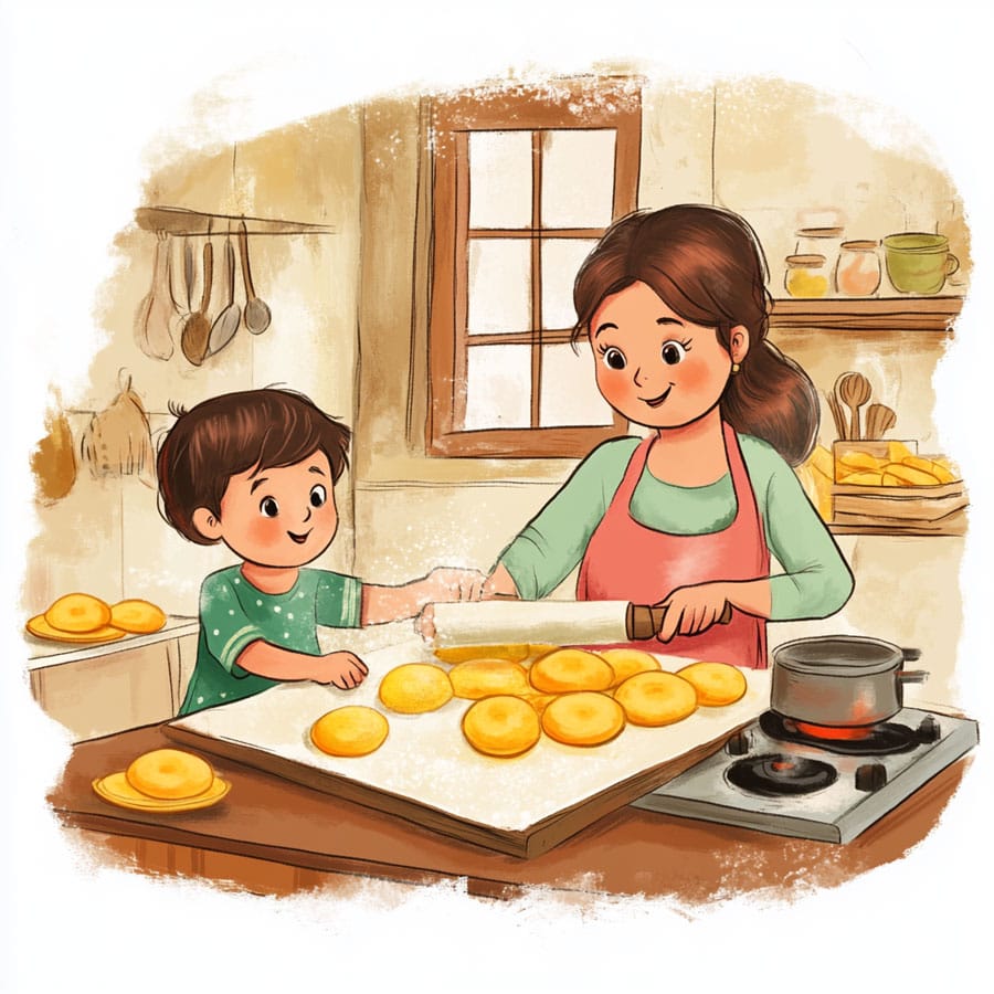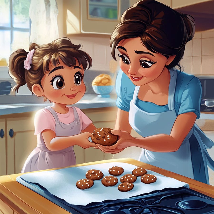 This scene of a mom and daughter baking together is a beautiful reflection of shared family moments that strengthen bonds and create lasting memories. Cooking together fosters teamwork, communication, and patience, while teaching practical skills like following instructions and measuring ingredients. These moments are invaluable for children, as they offer the opportunity to learn and have fun at the same time, developing a sense of accomplishment and shared happiness.