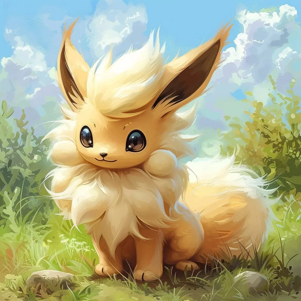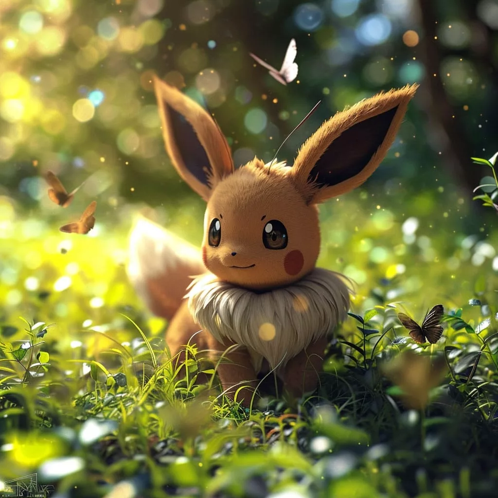 Eevee is based on a small fox and also shares similarities with a Pomeranian dog: both have a lot of fur on the neck and tail, and a behavior that makes them ideal pets. Eevee has long, pointy ears and a brush-like tail. Its agile and flexible body is built for speed and agility. It is well known for its many “Eeveelutions.” Its genetic instability allows it to evolve when exposed to evolution stones or by forming a bond with its trainer, allowing it to evolve into eight different species of Pokémon, each with a different type.