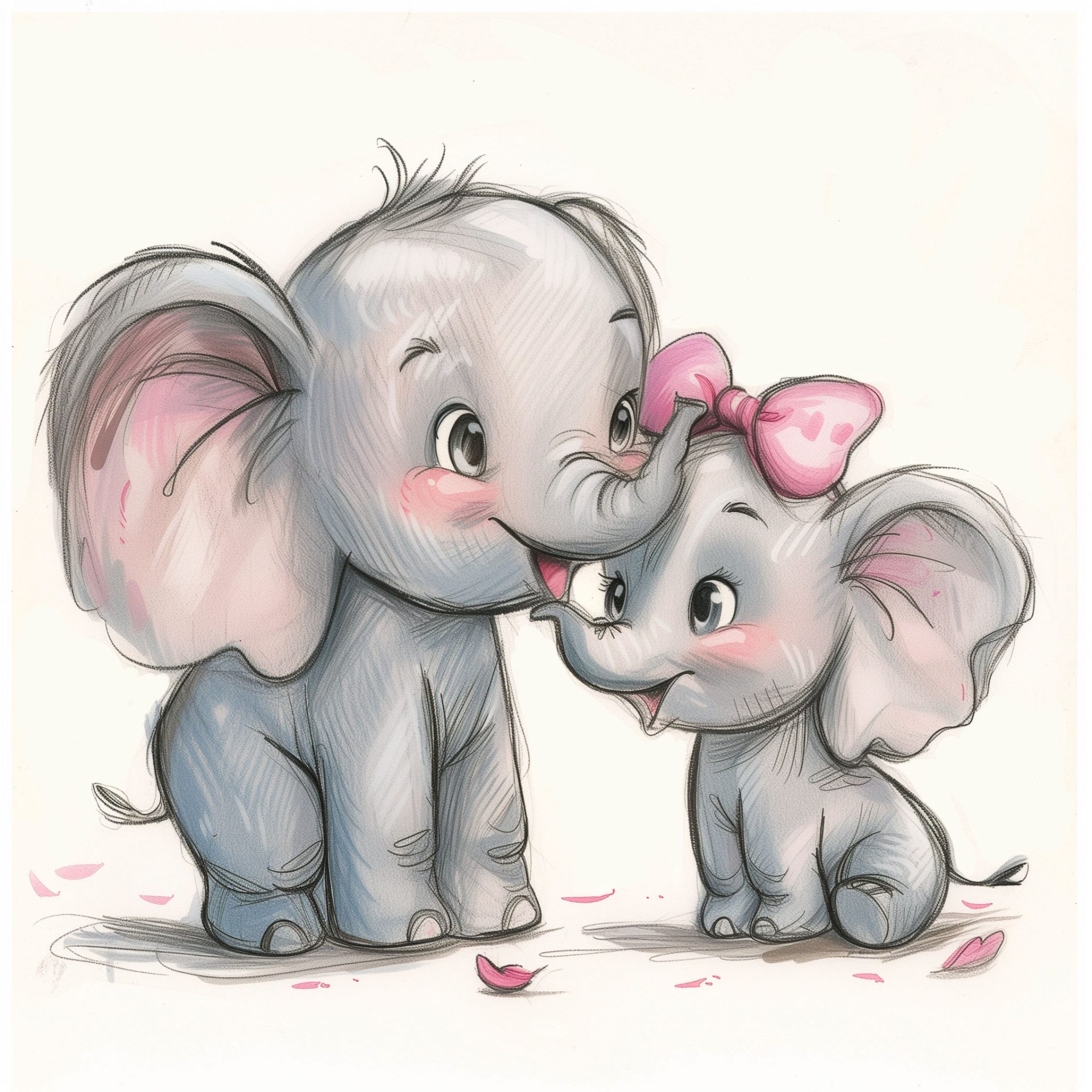 There are three main species of elephants: the African savanna elephant, the African forest elephant, and the Asian elephant. African elephants are known for their larger ears and curved backs, while Asian elephants have smaller ears and a more rounded forehead. Although the elephant in the drawing could represent any young species, its rounded ears slightly resemble those of Asian elephants.