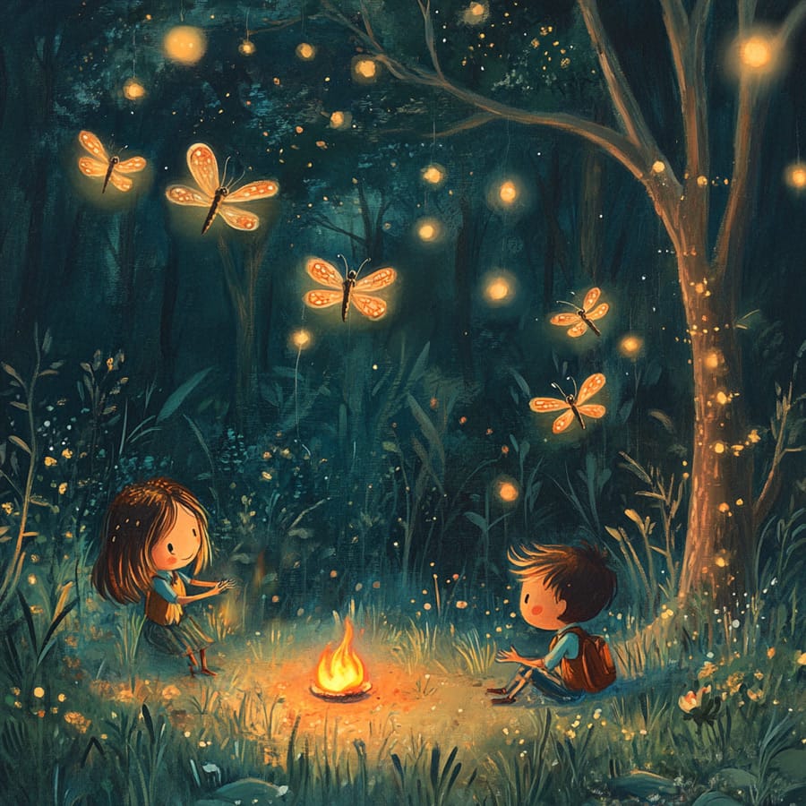 Fireflies come out at night, lighting up the fields of many towns with restless lights. In this children’s coloring illustration, the light is represented by a circle with a striped outline on the insect.