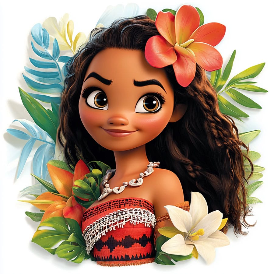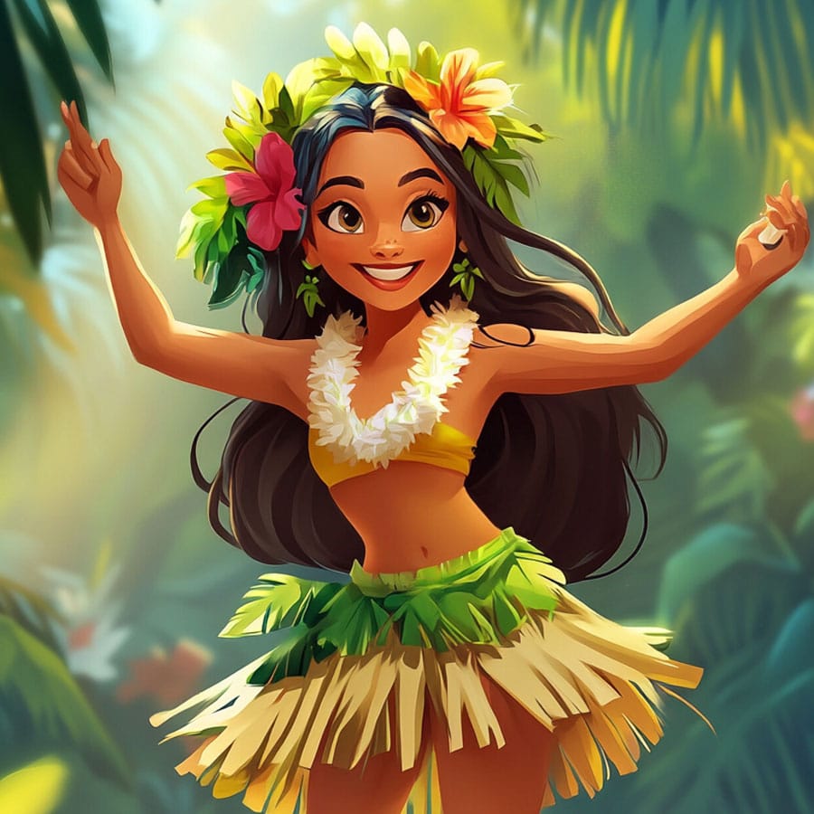 It’s interesting to note that in many Polynesian cultures, flower crowns are much more than an accessory; they are symbols of respect and love. This girl might be celebrating a special occasion, or perhaps she’s simply enjoying the beauty of a peaceful day in her paradise corner. Every part of this drawing invites you to imagine a different story, full of adventures under the tropical sun.