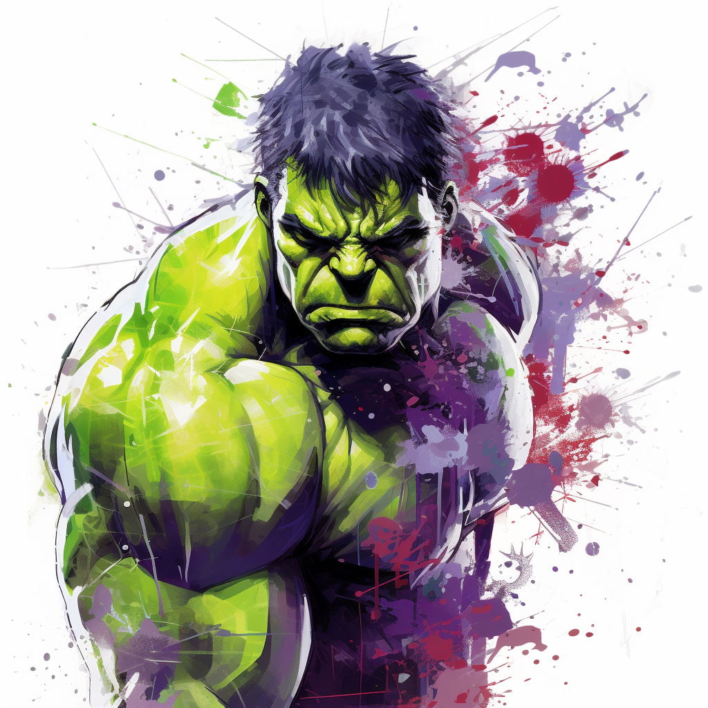 To color the Hulk, you will mainly need green and purple. He is famous for his green skin and purple trousers. For additional details, you can also have black, white, and other colors on hand.