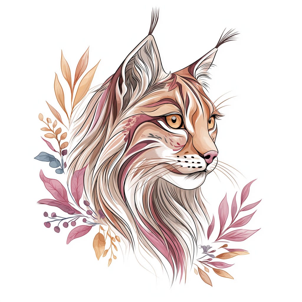 This drawing is perfect for practicing texture techniques. The lynx has thick fur, covered in dark spots, golden and gray tones, and lighter areas around the belly and chest. Start with a soft golden-brown or light ochre base using colored pencils. Then, build volume by adding darker browns along the back and behind the ears.