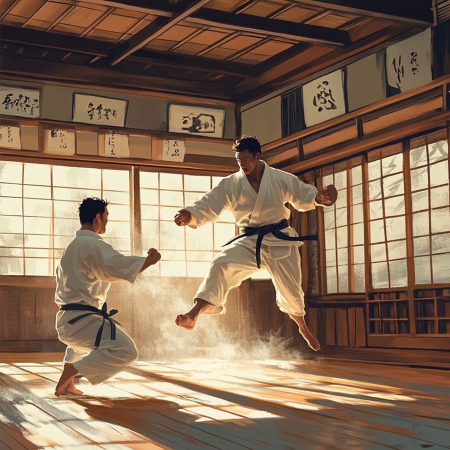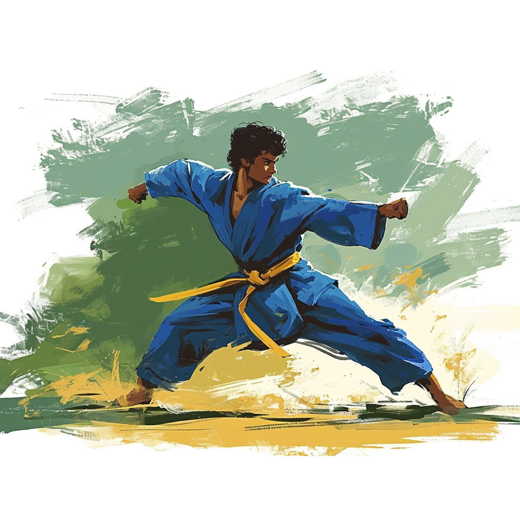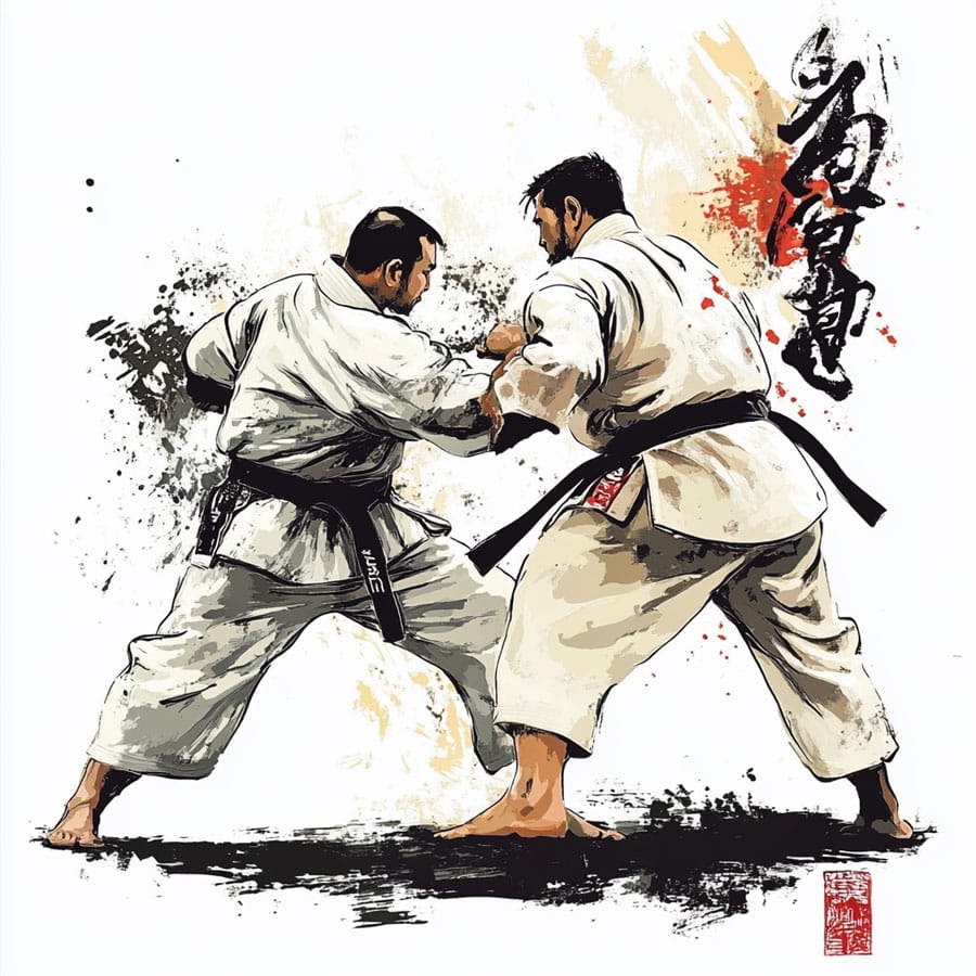 - Uniforms: Martial arts uniforms (karategi or kimono) typically feature vibrant, high-contrast colors like white, red, or blue. You can choose the colors you prefer to represent each fighter. Use gray shadows or darker tones on the folds to add depth and volume.