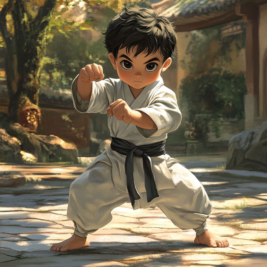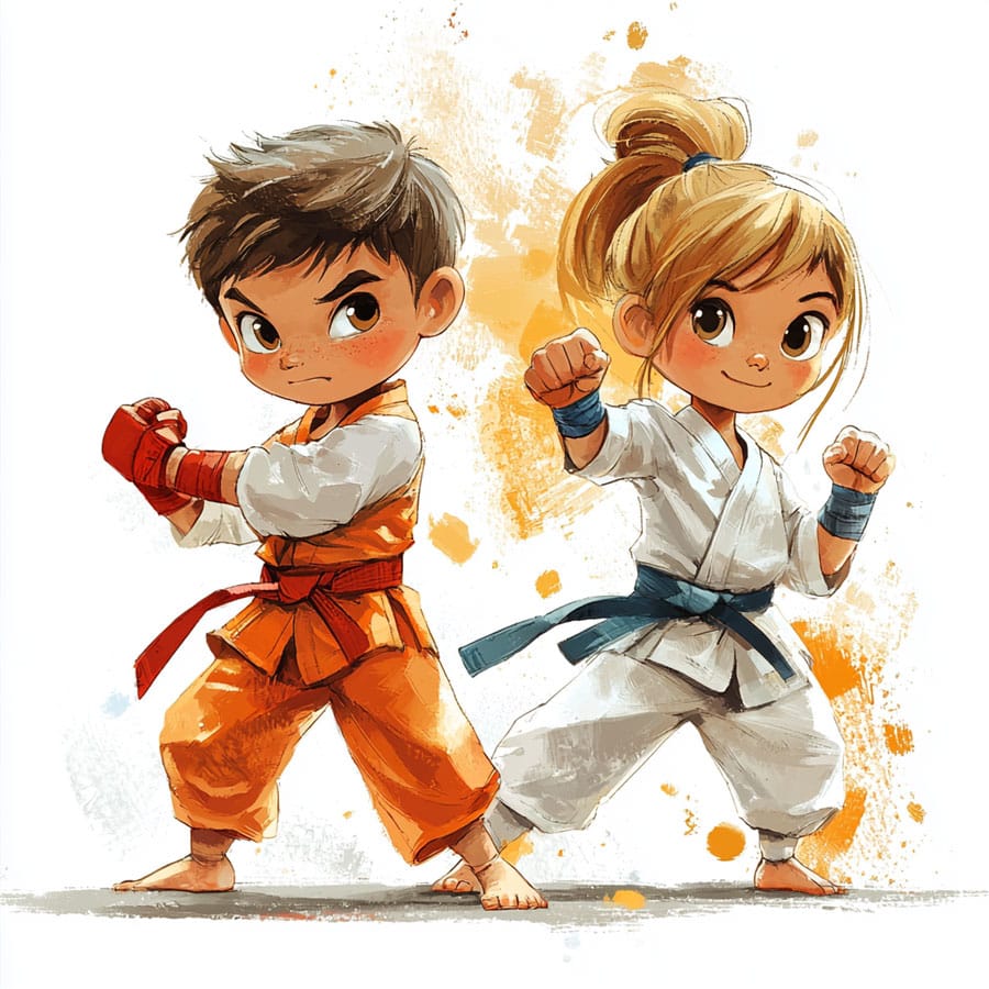 This drawing of a martial arts scene invites reflection on the numerous benefits these practices offer children. Beyond being a physical activity, martial arts serve as an educational tool that fosters values such as respect, discipline, patience, and self-control. The pre-fight bow, as depicted here, symbolizes not only the beginning of an activity but also the recognition of the opponent as a learning partner.