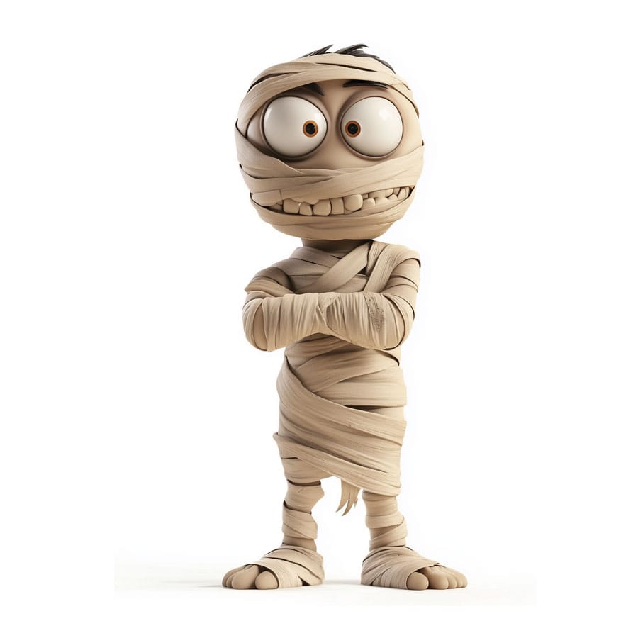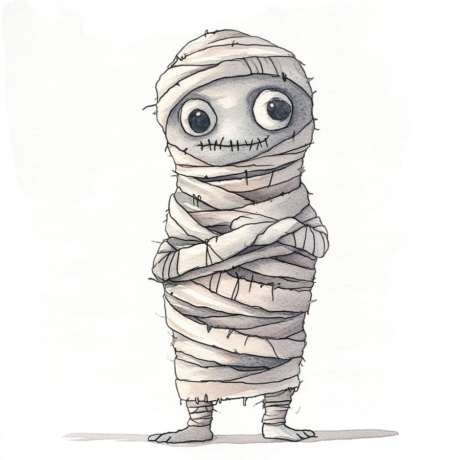 A fun fact about mummies is that in ancient times, Egyptians believed wrapping the deceased in bandages prepared them for eternal life. But this little mummy seems more concerned with enjoying the present than thinking about eternity!