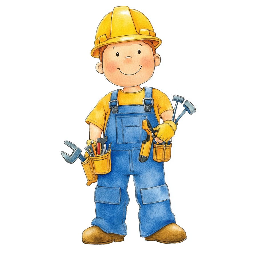 This drawing invites us to consider how technical professions like plumbing support our communities. As you color it, imagine what a day without clean water or with broken pipes would be like. Ask yourself what skills a plumber needs to solve these problems and how their work might evolve in the future.