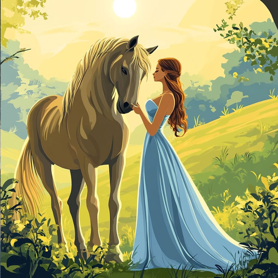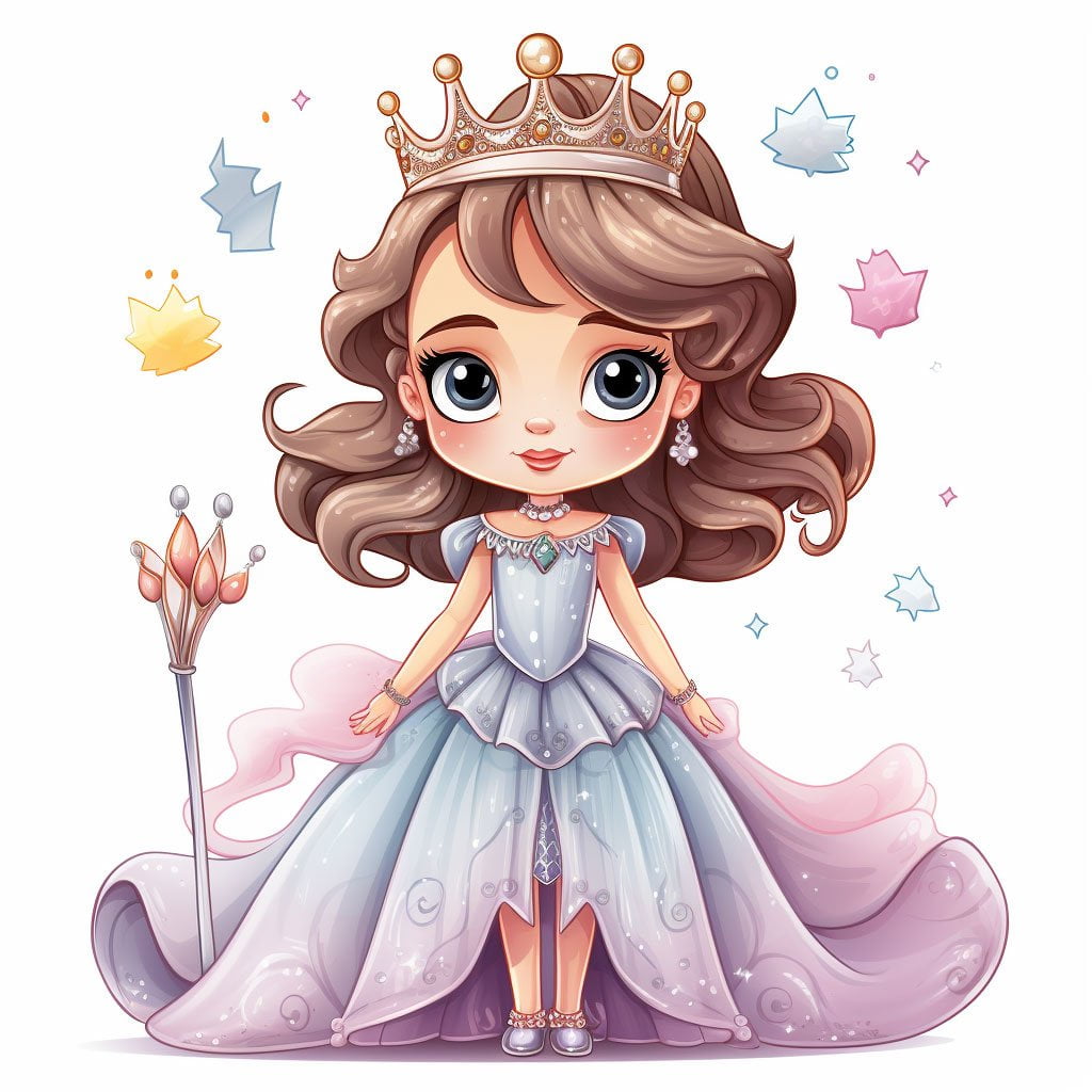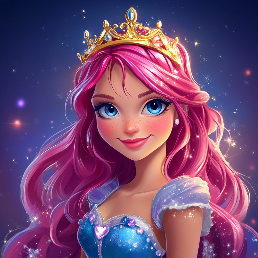 The background will complement the drawing and help make the princess stand out. A gradient in soft tones like blue, lilac, or pink can create a magical atmosphere, while a background with elements such as a castle, a garden, or glowing lights can add a storytelling touch. If you want to create a special lighting effect, try adding white or yellow dots in certain areas to give the impression of floating light or magical sparkles.