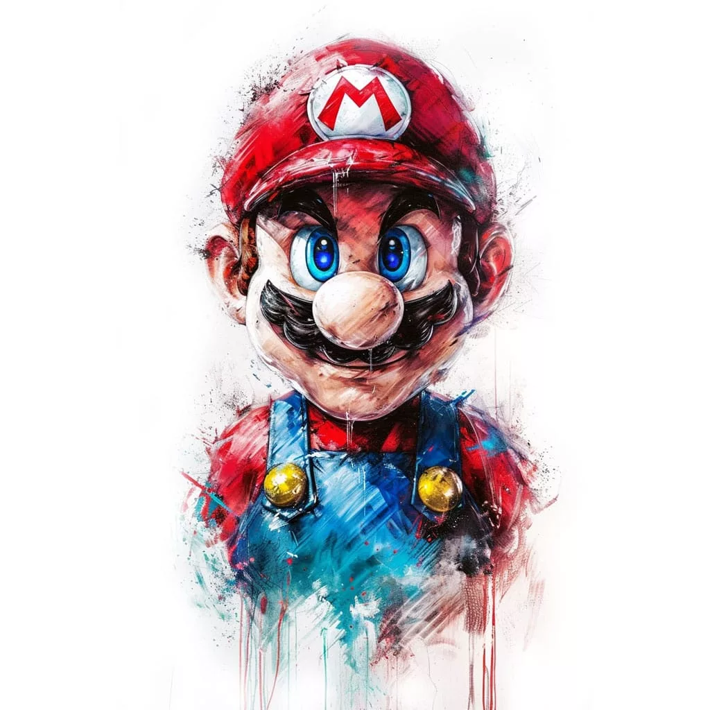 Mario’s cars in games like Mario Kart are colorful and full of details. Choose bright colors and consider using techniques like gradient to give it a dynamic look. Don’t forget the details like flames or the characteristic symbols from the Mario universe.