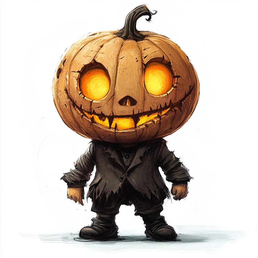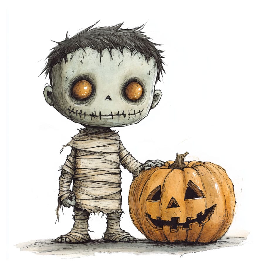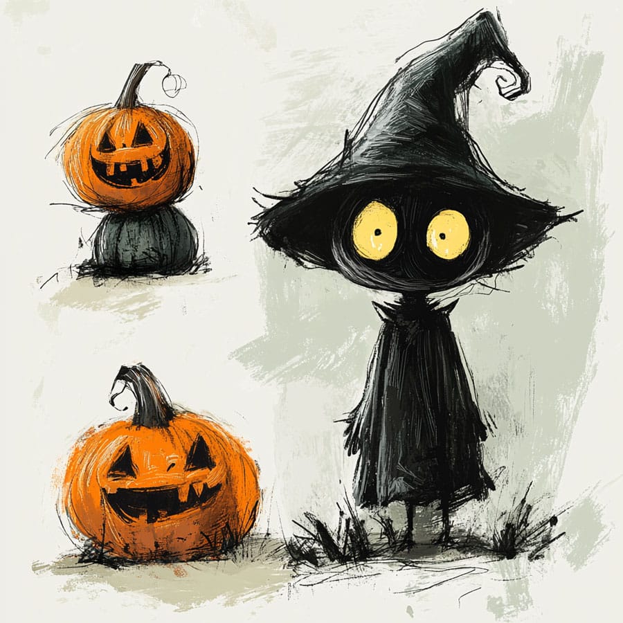 A fun fact about Jack-o’-lantern pumpkins is that this tradition comes from an Irish legend about a man named Stingy Jack. Today, carving pumpkins is one of the most anticipated activities of the season, and this drawing pays homage to that tradition with a more adorable and charming interpretation.