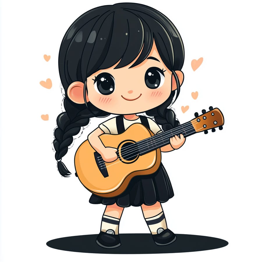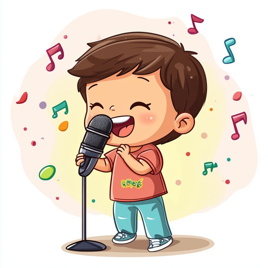 Finally, around the girl, there are musical notes and stars. You can color them in shades that represent the kind of music you imagine she’s singing, like gold, yellow, or even rainbow colors to reflect the energy and excitement of the music. Remember, every color you choose can express something special about the song she’s performing!