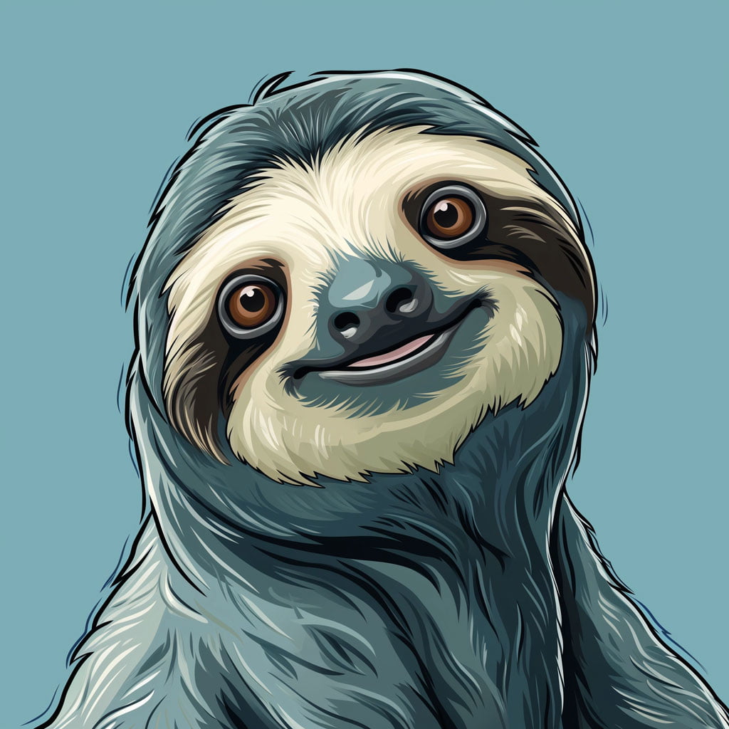 - Face: Sloths have a very distinctive face with wide nose, small eyes, and a big smile. Use darker shades around their eyes and nose to make these features stand out. Don’t forget the patch of fur that often looks like an eye mask!