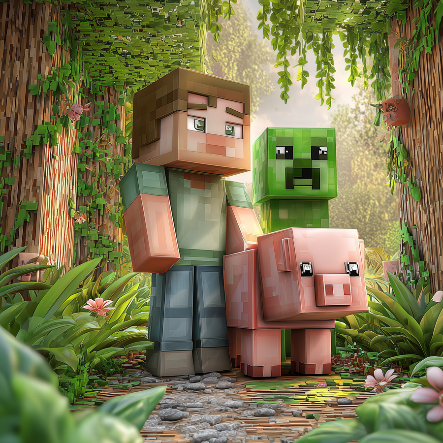 In the world of Minecraft, every block is an opportunity to create. This coloring page shows Steve, faithful to his sword, alongside a pig and a chicken, ready for new adventures. Now it’s your turn to bring them to life with colors, textures, and shading. Imagine a sunny day on the plains or an afternoon with orange skies at sunset.
