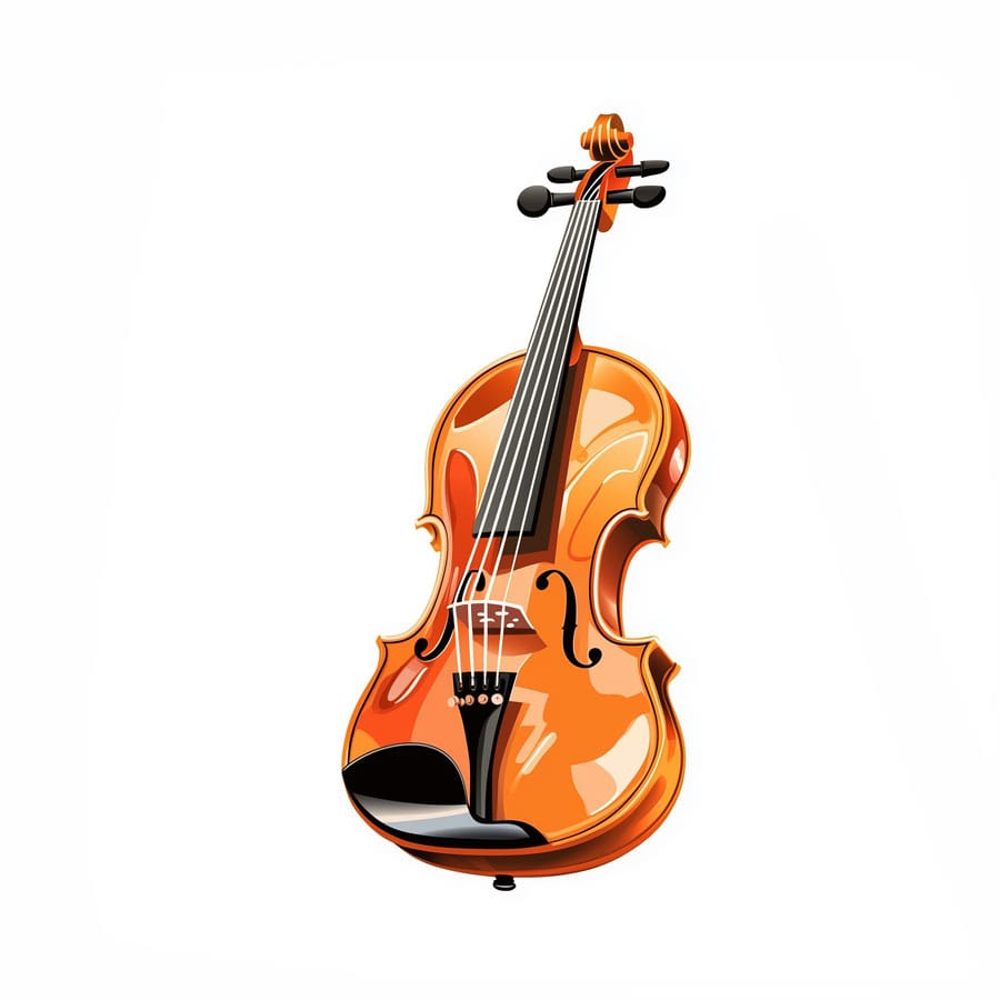 The violin looks great in wood tones like reddish brown, toasted orange, or light brown. Simulate the wood grain with thin strokes. The bow can be colored using gray, black, and small white highlights to make it look shiny and metallic.