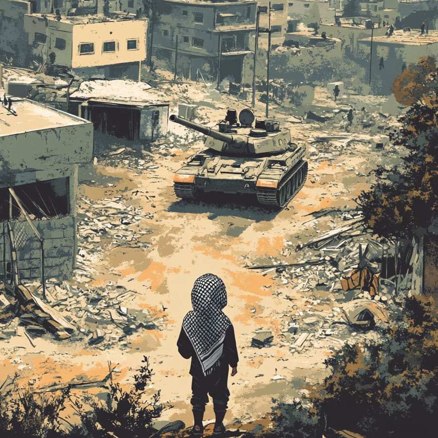 This illustration offers an opportunity to address complex issues in an accessible way, encouraging children to reflect on matters of justice, empathy, and solidarity. It also inspires them to think about how they can contribute to building a more peaceful world while exploring artistic techniques to represent emotions and environments.