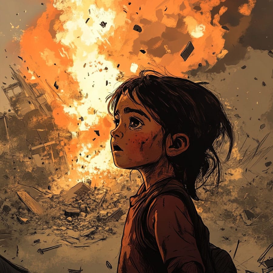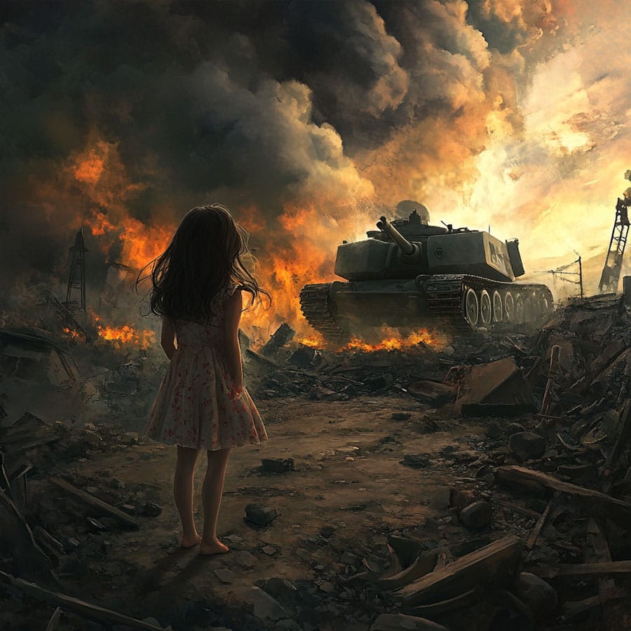 This harrowing war scene raises questions about the loss of innocence and the transformation of childhood into a stage overshadowed by fear and violence. It compels us to reflect on the role society plays in protecting the most vulnerable. The image also challenges the cultural and political values that allow such situations to occur.